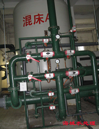 離子交換設(shè)備是一種傳統(tǒng)的、工藝成熟的脫鹽處理設(shè)備,其原理是在一定條件下,依靠離子交換劑(樹(shù)脂)所具有的某種離子和預(yù)處理水中同電性的離子相互交換而達(dá)到軟化、脫堿、除鹽等功能。用于深度脫鹽處理,產(chǎn)水電阻率動(dòng)態(tài)可達(dá)到18MΩ·cm。無(wú)論是鍋爐用水的軟化,脫堿軟化,脫鹽水,純水,超純水的制備均需采用離子交換法來(lái)進(jìn)行。其類別有單床、復(fù)床、混合床之分,水處理方法也根據(jù)具體情況可采用順流法,逆流再生浮床法等。